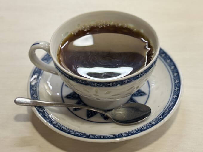 食後のホットコーヒー。飲みやすい軽めのコーヒーで美味しい。
