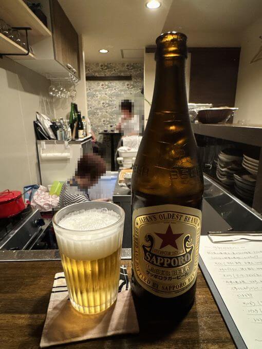 フレンドリーな女性ひとりが切り盛り。とりま、赤星で開始。