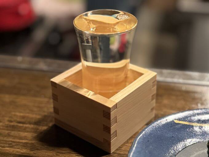 枡(ます)でいただく日本酒は一味違っていいねェ♡