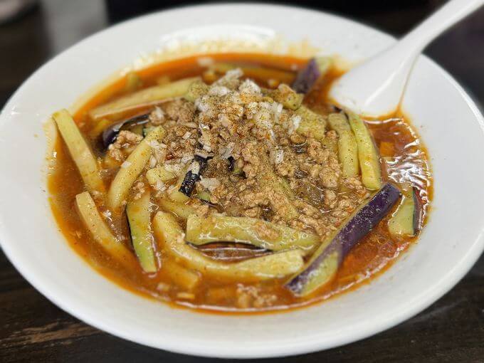 細切り茄子とこのスープがまた合うのよ。唯一無二のクセになる味わい。