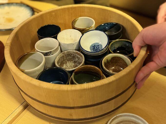 好きなお猪口を選ぼう。飲み放題はお店のセレクトで1種類が飲めたよ。
