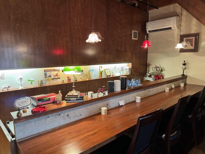 静かなジャズが流れる店内。こちらは1階のカウンター席。