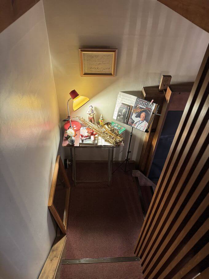 アンティーク雑貨や楽器がディスプレイされている素敵な空間。